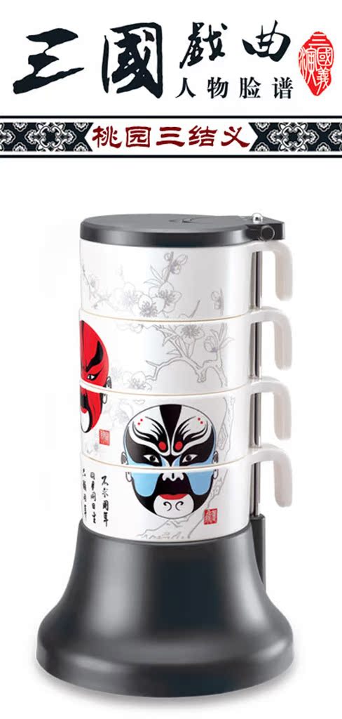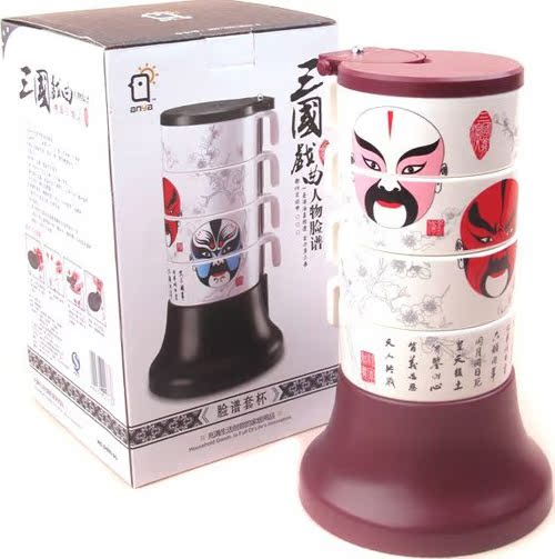 Product overview: "pot liquor happy encounter? how many things have to pay in the joke?" Three Kingdoms opera of Taoyuan three sworn brothers? Liu Bei? Guan Yu?Zhang Fei. The body made of high-quality melamine material? heat 120 degrees -20 degrees of cold? non-toxic? no smell? not brittle. The novel design and beautifulappearance? easy to use? easy to carry and convenient. Exquisite material? fineworkmanship? let you feel the out of the ordinary and full of creative Home Furnishingnecessities. A set of four stacked cup tower cup? gift giving is high-grade? more cultural connotation.