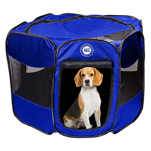 Studio : Creative Pet Group, LLC Publisher : Creative Pet Group, LLC Binding : Misc. Product Description This AKC Portable Pet Play Pan can keep your Pet safe and secure while on the go or at home. Roomy enough for your pet to play, or even sleep when it is nap time. This pen is great for play, exercise, house training and is Suitable for indoor and outdoor use. Never worry about the pet playpen flying away the built in loops on the base of playpen allow you to securely stake it into the ground. Perfect for indoor use as well, providing a play area 0