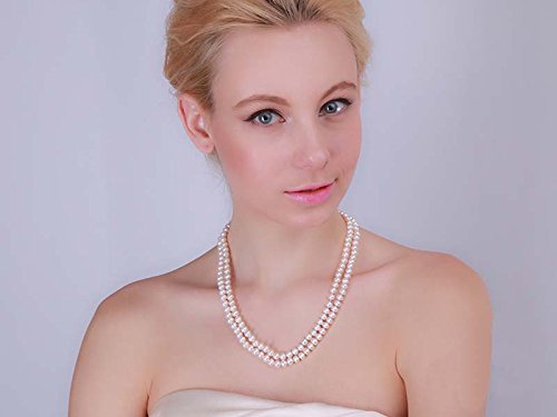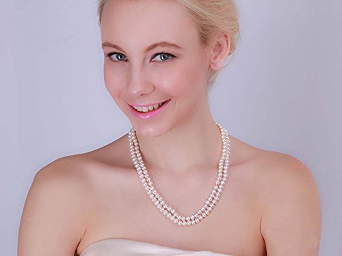 Description *Classic two-strand pearl necklace made with 7mm white flatly round freshswater pearls.