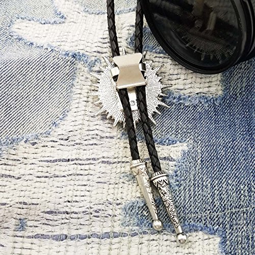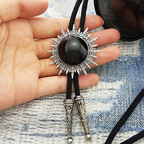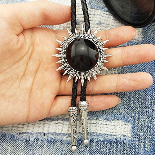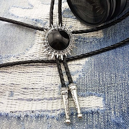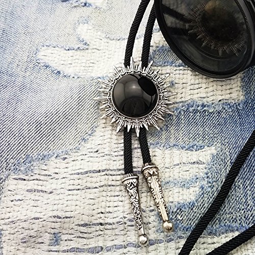 (Lanxy)/Accessories/Ties/DIRECT FROM USA/Lanxy Classical Native American Sun Shape Round Black Stone Bolo Tie For Man