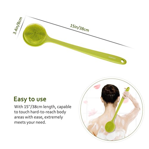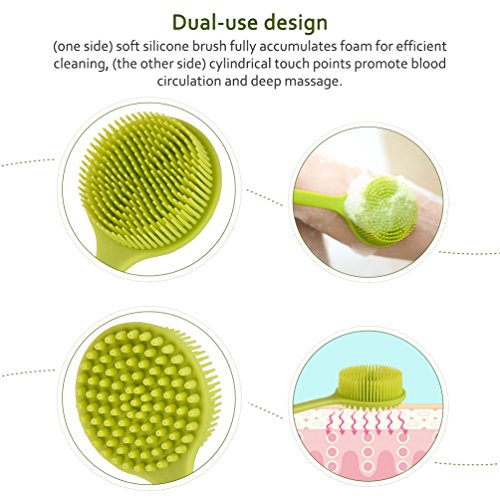 Pretty See Silicone Bath Body Brush Cleaning Shower Scrubber with Ultra-soft Bristles and Long Handle, Green
