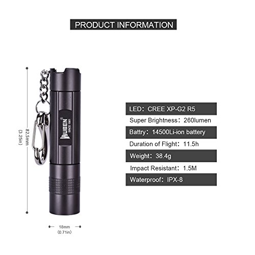 LED flashlight has USB rechargeable, 600mAh 14500 Li-ion battery. CREE XPL-V5 top level Lamp beads. Provide supper brightness: 260lumen. Duration of flight is 11.5 hours.