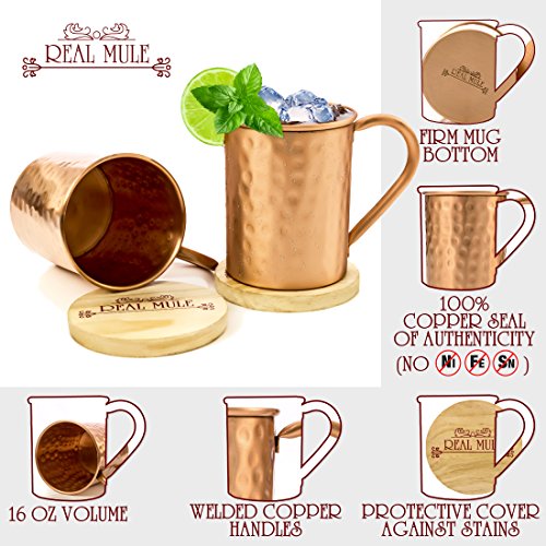 Original Moscow Mule Mugs Can you imagine letting steam off at the end of a tiring day with a Moscow mule cocktail in an authentic copper mug that would give your drinking experience a unique stylish touch? Would you like to decorate your home shelves with original handmade pure copper mugs that would make your kitchen shine? Relax With An Ice Cold Moscow Mule Cocktail In An Exquisite Copper Mug By RealMule Sink in the sofa with a frozen drink of vodka, whiskey, cocktail, ice cold beer or just a refreshing soft drink in the style of a genuine quality copper mug! Try it with water, iced tea, Whiskey, Bourbon or any other drink you take with ice. Offer your home decoration the unique glow of our handmade, polished copper mugs and make your guests' heads turn! Premium Craftsmanship Mugs Our high manufacture standards provide you with a 2-Pack of 100% pure thick copper 16oz mugs, coated with food-grade lacquer to retain their shine. Handmade hammering by experienced craftsmen makes our mugs stand out of most similar products on market! 2 Practical Wooden Coasters To add more value to this excellent drink ware set, we accompany our mugs with a classy set of 2 wooden coasters, to protect your furniture in style. Rest Assured That Your Purchase Is Entirely Risk-Free! At RealMule we take pride in the quality and craftsmanship of our Moscow Mule Mug and we have forged a strong confidence relation with our customers. If your Moscow Mule Mug Set does not make you perfectly happy, we will be glad to fully refund you. Don't Waste Another Minute! Click Add To Cart Now While Supplies Last! 0 |