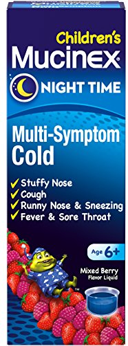 ReleaseDate : 2017-04-03 Studio : Reckitt Benckiser Publisher : Reckitt Benckiser Binding : Health and Beauty Product Description When your little one can’t sleep, no one can sleep. And when it’s more than one symptom that’s causing all the trouble, it’s time to get relief. It’s time for Children's Mucinex?Night Time Multi-Symptom Cold Liquid. Sneezing, stuffy or runny nose, headache, aches and pains, cough, fever. Let Children's Mucinex?Night Time Multi-Symptom Cold Liquid in Very Berry Flavor help. 0
