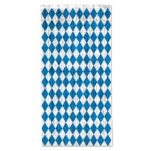 Studio : Beistle Publisher : Beistle Binding : Kitchen Product Description Beistle 58263 Oktoberfest 1-Ply FR Gleam 'N Curtain. This metallic curtain is white with blue print. It measures 8 feet tall by 3 feet wide. This curtain is a great hanging decoration for an Oktoberfest themed party! 0