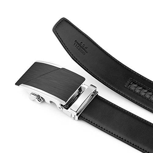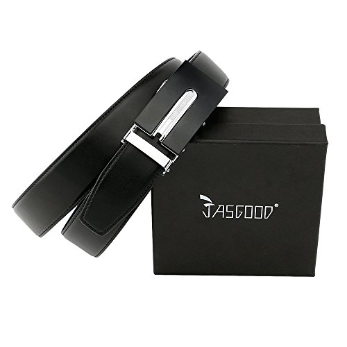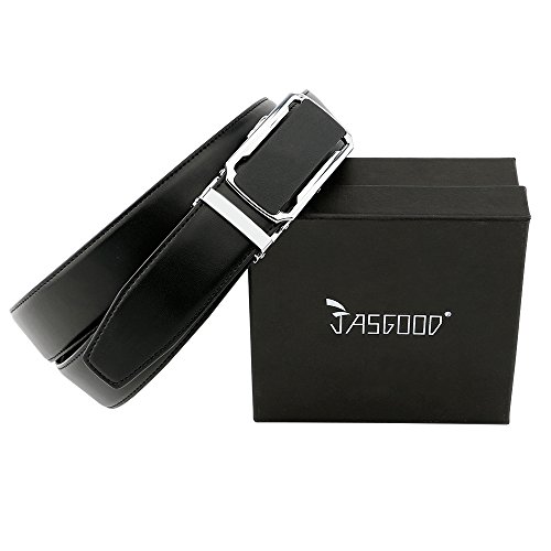 -. Feature : NO MORE HOLES - JasGood JA054 Fashion Ratchet Belt provides unique adjustments for an extremely comfortable fit. Easy removable buckle allows you to cut the belt to your ideal size! / EASY USE - Just slide the belt into the buckle and pull the belt through, the buckle simply auto locks the belt, to release the belt, gently push the lever on the side of the buckle and lock will snap. Simple, smooth and sleek! / MAXIMUM DURABILITY - Width of Leather strap is 3.5cm presenting the perfect look of a fine, genuine leather quality belt, complemented with an HIGHLY FASHIONABLE stylish buckle that is elegantly designed with class. / SIZE-Length(not included Buckle)115CM(45.27Inch) Suit Pants Size 32"to 37",Larger Length(not included Buckle) 125CM(49.21Inch)Suit Pants Size 38"to 42".Buckle Size-lenrth:7cm(2.75Inch),width:4cm(1.57Inch) / GIFT BOX - Make a big impression! Enclosed in a lovely, attractive gift box.Ideal present for friends and relatives.