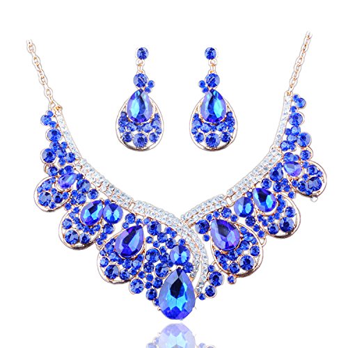 Material: Ginasy brand designer jewelry set. Stunning blue crystal rhinestone. Lead and nickle free. Hypoallergenic and comfortable for sensitive ears and skin.