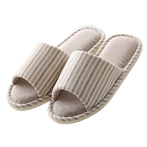 -. Feature : SOFT & COMFORTABLE - Our soft slippers are the perfect choice for keeping your feet comfortable throughout the day. Enjoy the comfort of these slippers on your feet after a long day at work. / WELL MADE - These slippers are made of high-quality, thick and super comfortable cotton fabric with a memory foam insole and exquisite knitted stripe pattern trim. The newly developed memory foam sponge insole makes these slippers flexible so they will conform to your feet and retain their shape. 0.78 inch bottom waterproof platform away from the wet ground / LIGHT & SAFE -About 210g ~300g,free your feet from the constraint of high heels and working shoes, have a good rest of feet when getting off work.. The high elastic anti-slip PVC sole reduces the risk of slips and falls by providing you with traction on a variety of surfaces such as wood or tile floors, and protect your wooden and carpet floor with this light-weighted and cozy slippers. / SIZE OPTIONS - Available in multiple sizes and with the open toe design, these stylish slippers fit most standard sizes. / GREAT HOUSE SLIPPER CHOICE - Soft cotton fabric on the upper part of the slipper and lining, these slippers look natural and comfortable and are easy to slip into. The unisex style design let it be a great gift choice for all your families and friends. Fit for bathroom, bedroom, living room, office, holiday, leisure, etc; Hand or machine washable.
