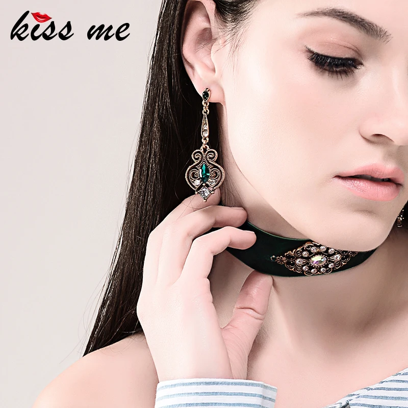 Production name ::Kiss Me Brand Retro Alloy Heart Drop Earrings for Women