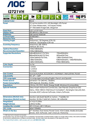 -. Title : AOC i2721vh / 27-Inch IPS LED-Lit Monitor, Full 1080p, 5ms, 20M:1 DCR, VGA/DVI/HDMI, VESA