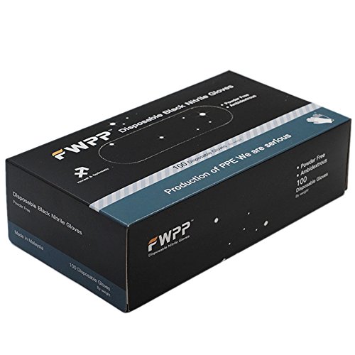 FWPP Disposable Nitrile Surgical Gloves Ambidextrous Textured Powder Free Latex Free, Hypoallergenic Pack of 100 Pcs,Black
