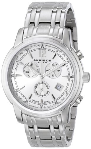 -. Title : Akribos XXIV Men's AK692SSW Ultimate Swiss Quartz Chronograph Silver Dial Silver-tone Stainless Steel Bracelet Watch