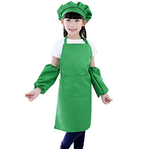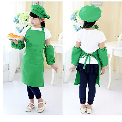 Monique Kids Chef Apron Hat Oversleeves Set Children Kitchen Cooking Baking Wear Kit Painting Apron Pinafore