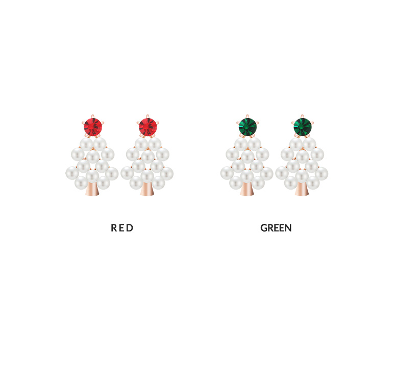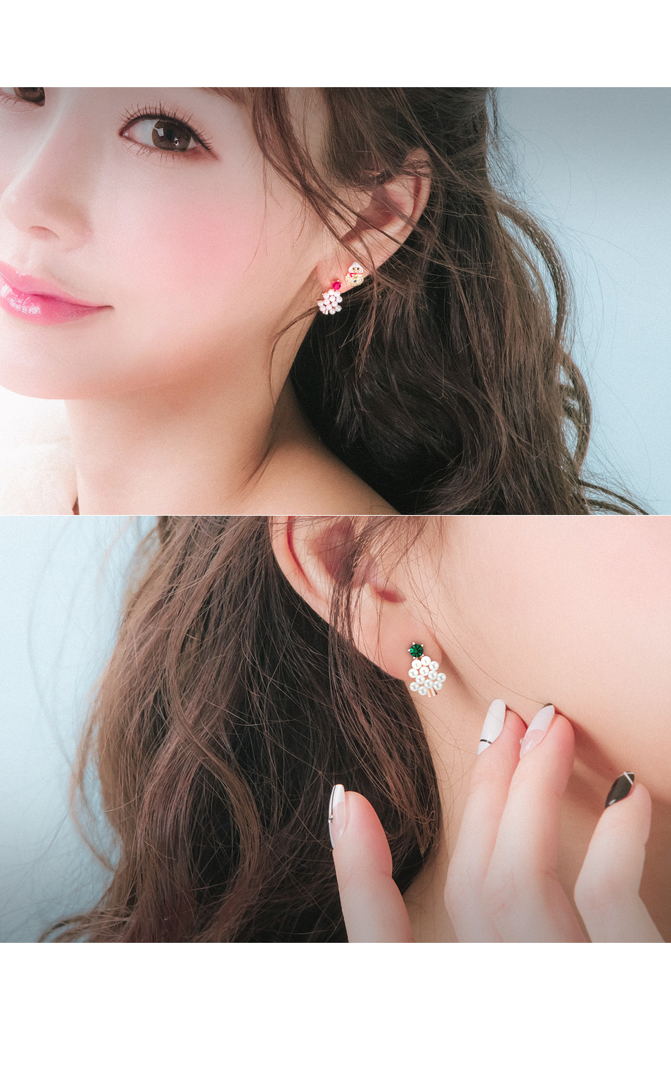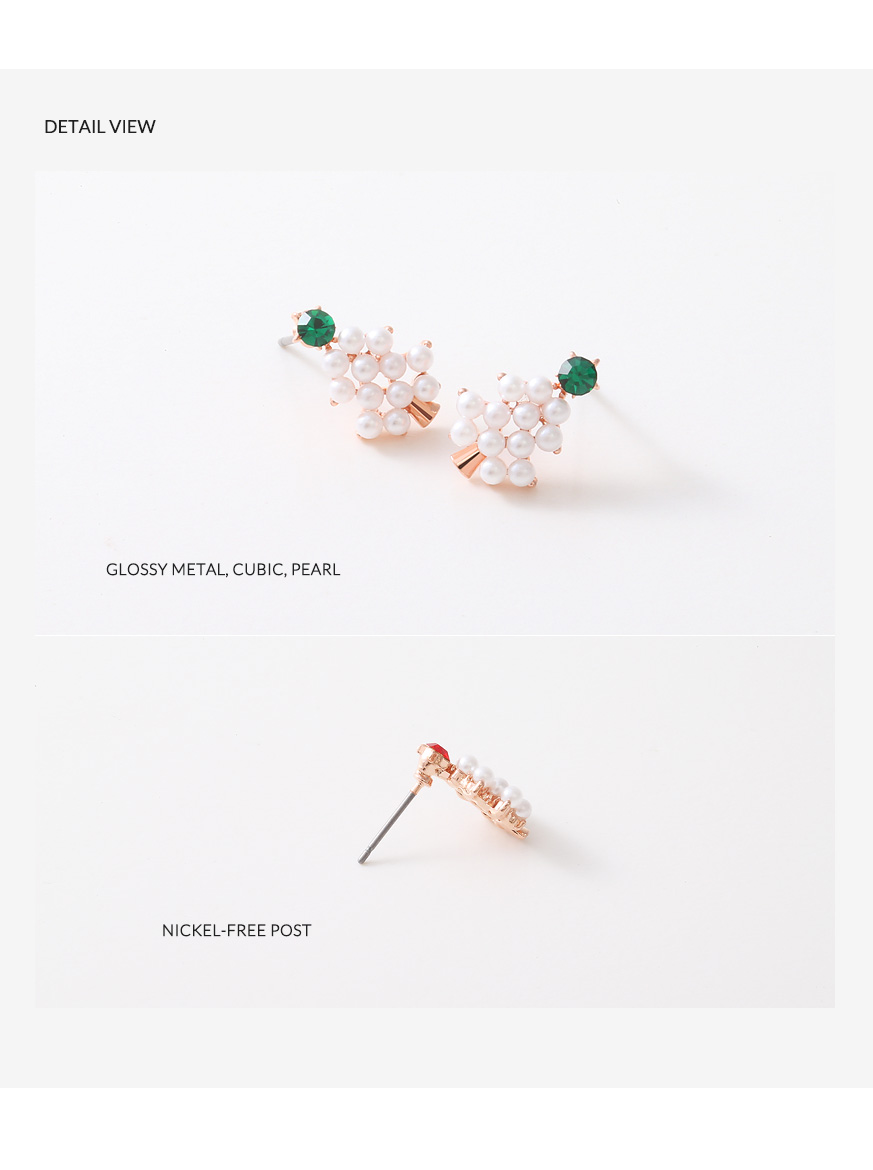 비비드한 레드 & 그린 컬러의 큐빅 아래로 화사한 진주가 몽글몽글 장식되어