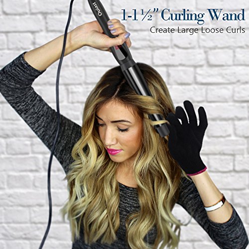 Ouiast Curling Wand 1-1.5 Inch Professional Ceramic Hair Wand Curling Iron with Cool Tip and Heat Resistant Glove, Dual Voltage