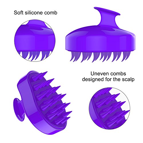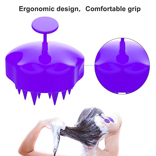 Shampoo Brush Scalp Massager, FReatech [Wet & Dry] Hair Scalp Massage Brush Soft Silicone Comb for Men, Women, Kids and Pets - Purple