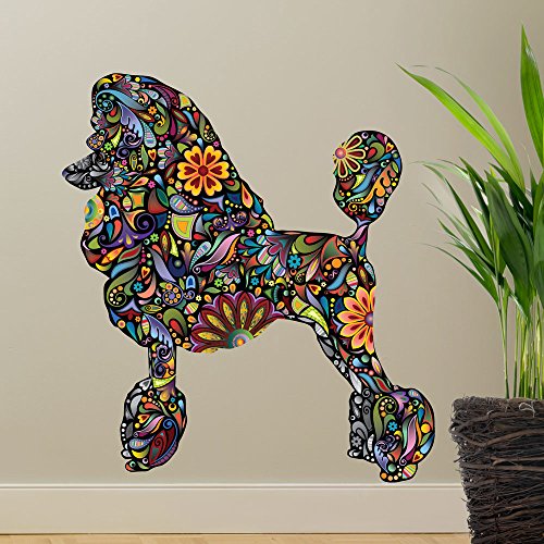 - Standard Poodle dog decal in a multicolored floral pattern