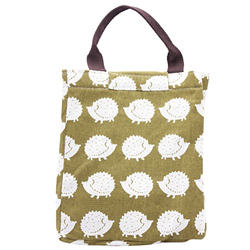 Mziart Reusable Cotton Lunch Bag Insulated Lunch Tote Soft Bento Cooler Bag (Brown Hedgehog)