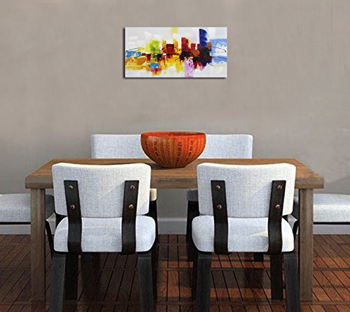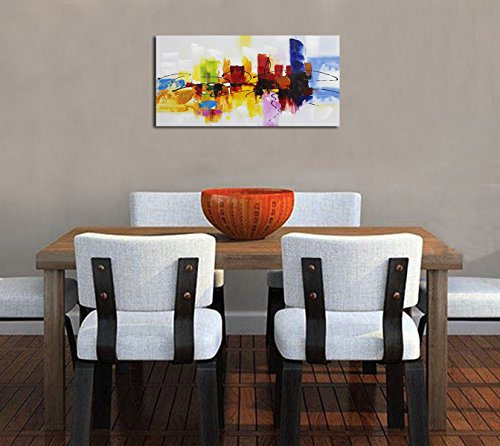 -. Feature : Abstract painting on canvas,bright and multiple colors,absolutely lighten up your room,best choice of simple fashion wall art / 100% hand painted oil painting of real artwork,high quality canvas and environmental oil paints material / Can be a good decor for living room,kitchen,bed room,children's room,office,restaurant or public place etc,also can be a gift or collection / Stretched and framed, ready to hang,a strong hook is already fixed on the frame and nails are provided,easy to hammer into the wall