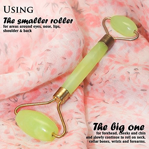 Gently glide the ends of the Jade stone roller over clean skin 1-2 times daily for approximately 10 minutes, as guided in the diagram below . Roll after applying other skincare products such as moisturisers and creams to encourage improved absorption . Note that only gently pressure is required - do not press hard or you just risk damaging your roller!