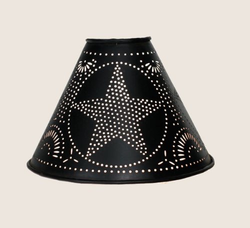 -. Feature : Tin Punched Star Lamp Shade in Black / Black finish with Punched Star Design / 2" at top, 6" at bottom, 4" down slope / Shade clamps on torpedo light bulb / Lovely colonial, country or P.R.Imitive decor accent