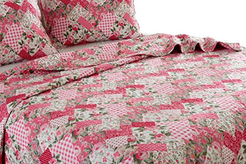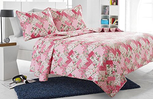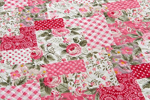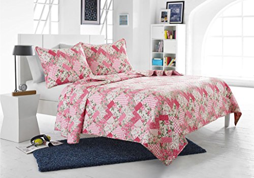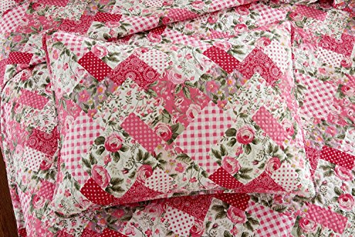 2pc Pink Floral Patchwork Quilt Set - Style # 1044 - Twin/ Twin XL - Cherry Hill Collection