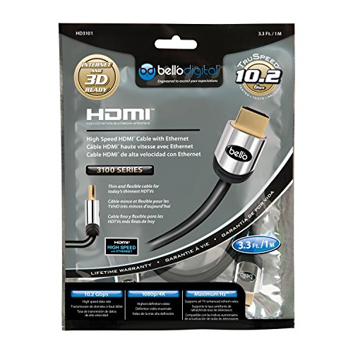 1.2 Gbps high speed. 3D Ready. 18P HD Video. UL CL3 listed for in-wall installation. 24K gold plating for optimum data transfer. 99.99% oxygen free copper. 1m