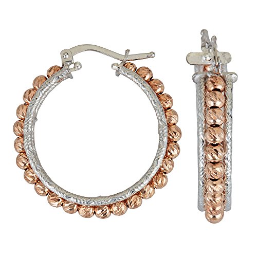 Sterling Silver Rose & White DC Beaded Hoops
