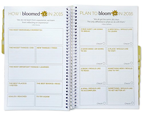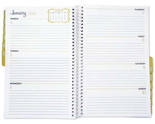 - Feature : 5.5" x 8.25" Daily Planner. Calendar runs from August 2015 to July 2016 / 2 Page Monthly View Spreads followed by Spacious Weekly Views / Sturdy Covers with Matte Film Lamination make Covers Flexible but Durable / *NEW FEATURE:* MONTHLY TABS plus Pocket on Back Inside Cover / Special Icons on Select Holidays, Inspirational Quotes on each Monthly View, End of Month Reflection Questions, Goal Tracking Tools & More!