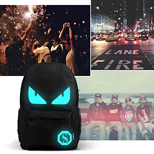 -. Feature : ღ FASHION LUMINOUS BACKPACK: The best part of this stylish cool bag is after absorbing light, after absorbing light in the day about 10-20 minutes, you can see the fluorescent effect in the dark and can keep about 4-6 hours. / ღ SUPERB QUALITY, PROFESSIONAL DESIGN: Main compartment with a laptop sleeve fits laptop up to 15.4", two side mesh pocket for you water bottle or umbrella, one front and back zipped pocket can store items like cell phone, keys, wallet. Large capacity and lightweight.Suitable for young adults to use. / ღ WIDEN S-SHAPED SHOULDER STRAP: Shoulder belt made of honeycomb dampness breathable material, 8.5cm widen S-shaped shoulder strap, can effectively relieve shoulder pressure, and make you comfortable carrying, long-distance travel will not be tired. / ღ ANTI-THEFT DESIGN: Theft proof combination lock and Dual-access zipper to keep your belongings safe, say goodbye to those pickpocket behind you. Purchasing this shoulder bag, you will get 1pcs password lock +1pcs luminous pencil case + 1pcsUSB cable by free, hurry to start! / ღ USB CHARGING PORT: With a humanized USB charging interface design, it is great to enjoy the convenient charging by connected with the portable charger and your electronic device, easily keep your smartphone full power anytime and anywhere.