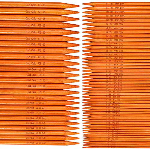 Old Oak 9 Inch 15 US Sizes Double Pointed Bamboo Knitting Needles Set (US1-US15)