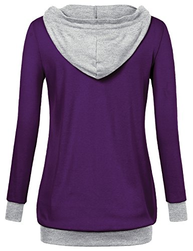 -. Feature : Hood with drawstring/Pullover styling/Long sleeves with vintage button embellished/Hits at hip / Lightweight hoodie sweatshirts feature V neck with adjustable drawstring tie and buttons embellished,the brass button detail on the front of the collar / The kangaroo pocket could hide the belly to make you a perfect body. Besides,you can carry articles like phone and purse in the pocket / It breathes well, the wrist cuffs don't get baggy after pulling up my sleeves for typing at work, and the waist band is very cozy without being constricting. / Please check the size information under the Product Description before ordering, rather than the "size chart" beside the drop down box