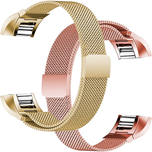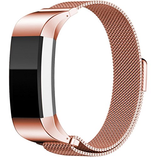 For Fitbit Charge 2 Bands, Humenn Stainless Steel Milanese Loop Metal Replacement Accessories Bracelet Strap with Unique Magnet Lock for Fitbit Charge 2 HR Large Small, Silver, Black, Gold, Rose Gold