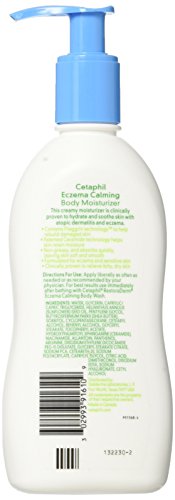 Cetaphil RestoraDerm Eczema Calming Body Moisturizer is formulated to moisturize and bring soothing relief to atopic skin and symptoms associated with eczema. Its advanced technology helps to repair your skin's protective barrier and promotes hydration for even the toughest skin conditions like eczema, atopic dermatitis, contact dermatitis, and cradle cap.Feature