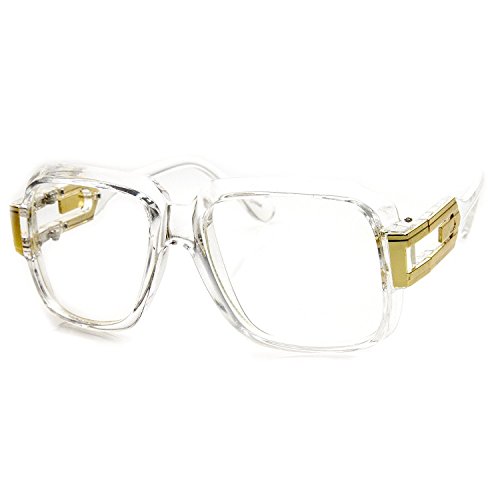 -. Title : MLC Eyewear Oversized Rectangular Hip Hop Nerdy Clear Lens Glasses with Metal Horn Rim - Clear and Gold