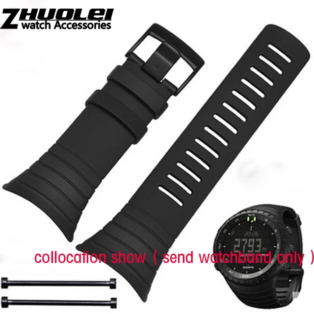 | [해외]새로운 도착 손목 suunto 코어 35 미리메터 블랙 남성 시계 스트랩 방수 고무 스트랩 시계 밴드 + screwbars + 블랙 pvd 버클 |