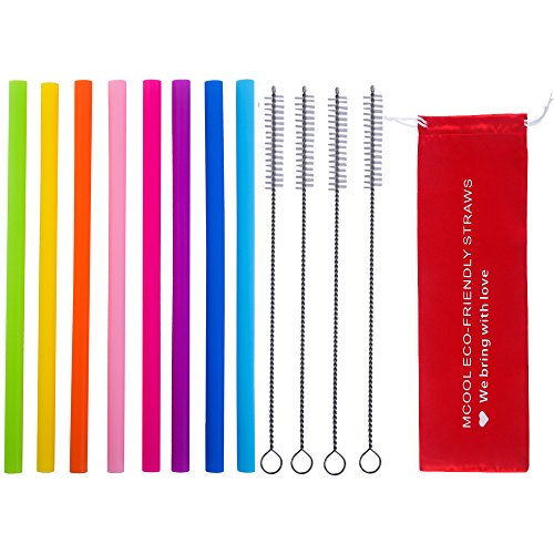 Mcool Silicone Straws 8Pcs Straight Smoothies straws for 30&20OZ tumblers+4 Brushes+1 Red Pouch