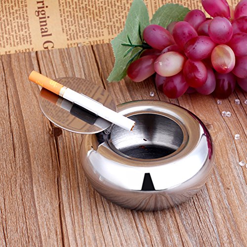 -. Title : Attac Ashtray, Stainless Steel Windproof Unbreakable Modern Tabletop Ashtray with Lid, Cigarette Ash Holder for Home Office Decoration, Silver