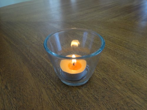 Heavy glass, 4 Pack, bottom diameter 2", height 2 1/4", top diameter 2 1/2", great for votives or tealights.