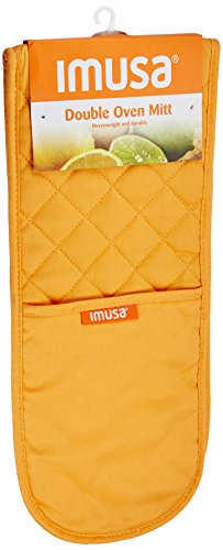 IMUSA Heat Resistant Double Oven Mitt Glove/Moppine, Great for Cooking & Baking & Handling Hot Pots and Pans, Orange