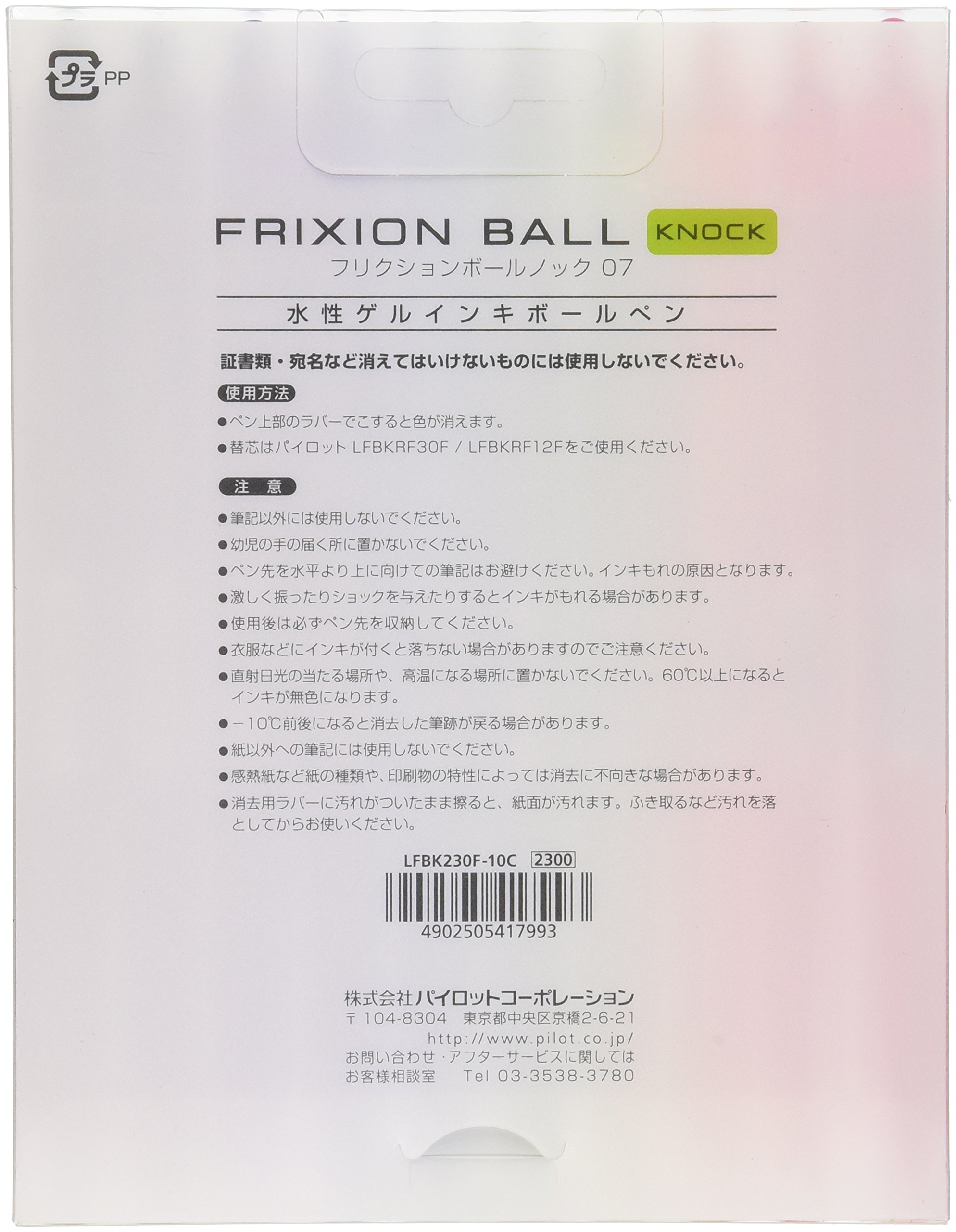 Pilot FriXion Ball Knock Retractable Gel Ink Pen 0.7 mm 10 Color Set (LFBK-230F-10C)