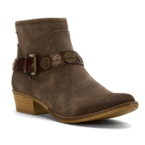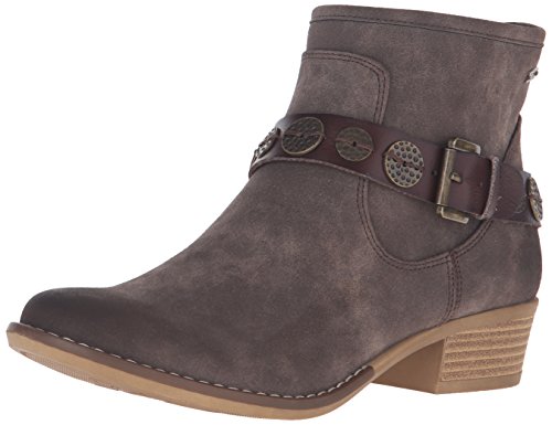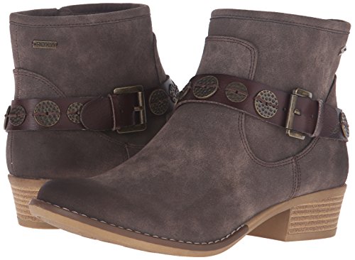 Studio : Roxy Publisher : Roxy Binding : Shoes Product Description Metal coin detail bootie with instep strap and buckle closure, interior shaft zipper with metal pull tab, canvas lined shaft and footbed, roxy metal plate, and flexibility tpr unit bottom. 0