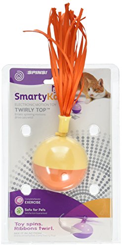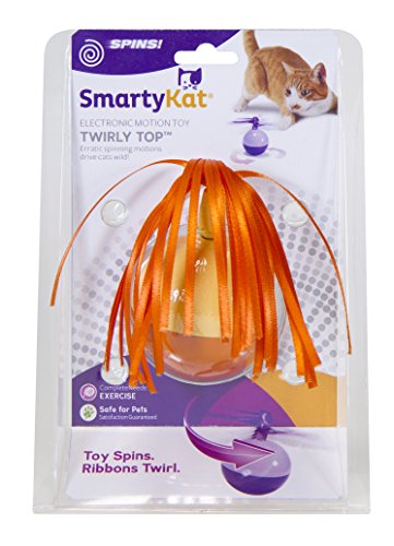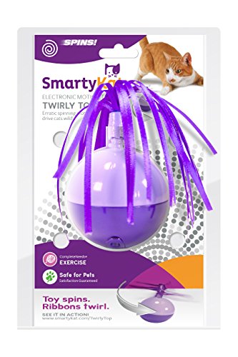 Studio : Quaker Pet Group Publisher : Quaker Pet Group Binding : Misc. Product Description SmartyKat twirly top electronic cat toy drives cats wild with its erratic spinning motions. Cats are intrigued by the ribbons that rustle when it twirls. It even works on carpet! replaceable batteries are included. The colors vary and are available in Purple and Yellow. A color will be randomly selected and can not be specified at this time. All SmartyKat products are backed by our 100% satisfaction guarantee. If you are not completely satisfied with your purchase, we will replace or refund it. 0