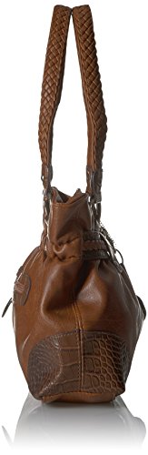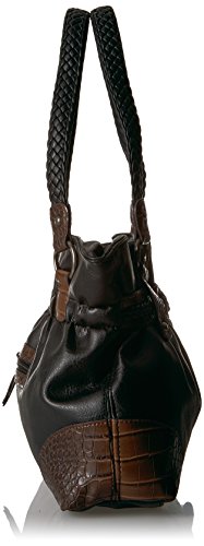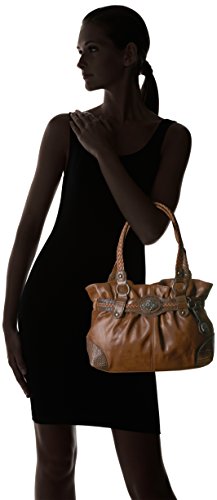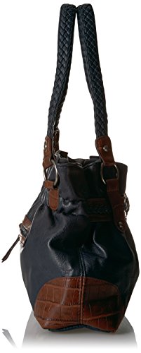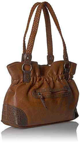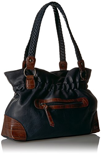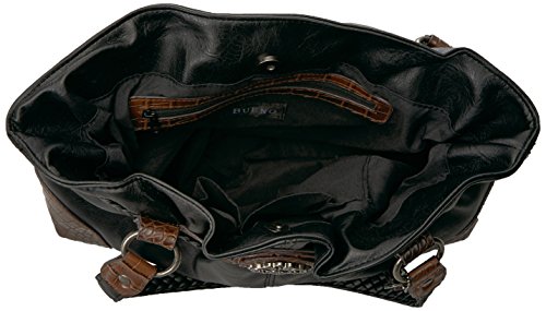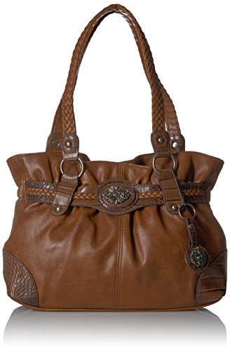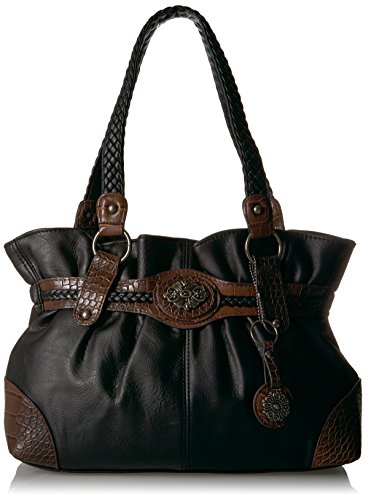Product Description Designed in a soft faux leather this western inspired tote is adorned on rate hardware, woven handles, spacious interior, mixed materials, numerous interior and exterior pockets, and detachable key ring 0