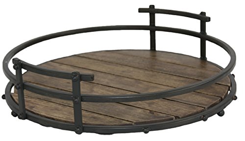 Manor Luxe Chateau Artisan Wood & Rivetted Metal Cafe Round Tray, 16"