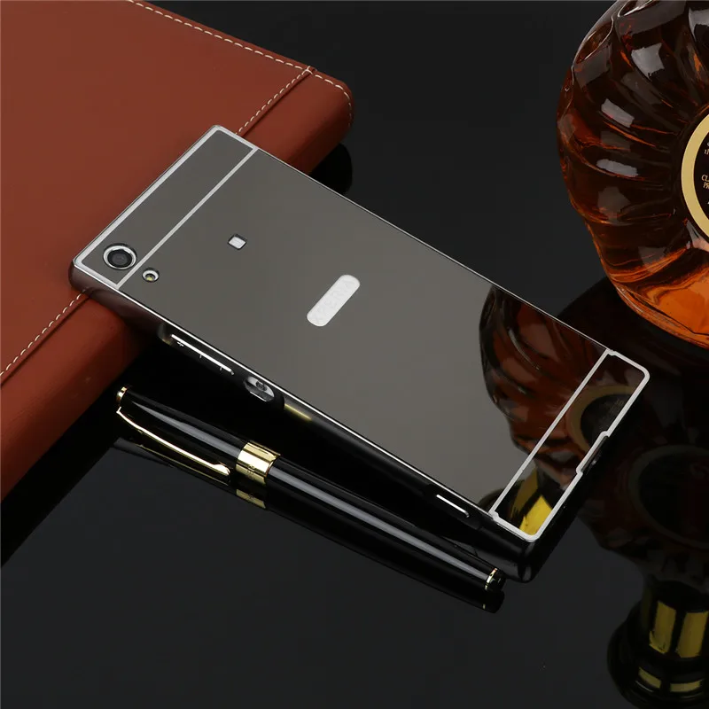 Feature:Metal Aluminum Frame mirror effect back cover Case