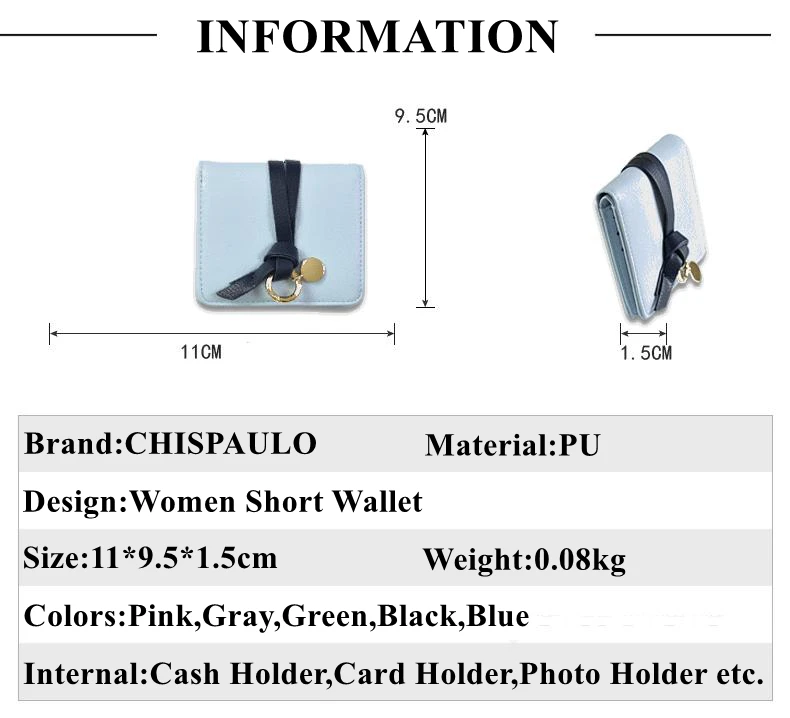 wallet color:Black,Gray,Pink,Light Green,Light Blue