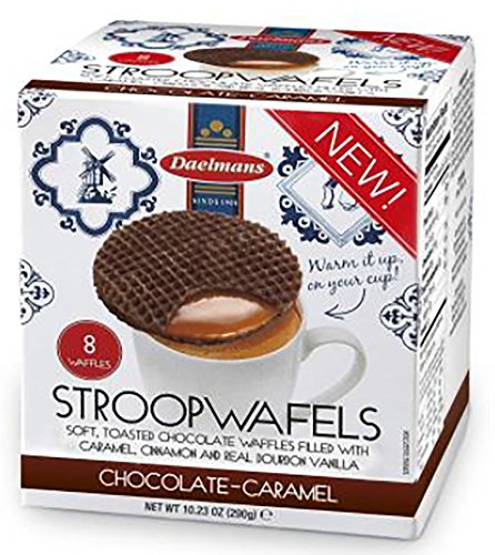 - Soft, Toasted Chocolate Stroopwaffels Filled with Caramel, Cinnamon and Real Bourbon Vanilla