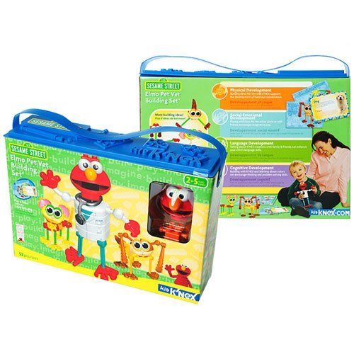 -. Binding : Toy -. Brand : K'Nex -. EAN : 0696747654905 -. Feature : Build Dr. Elmo the Veterinarian and his two pet patients, a cat and dog, at the same time! / Learn about caring for household pets with three Play & Learn Activity Cards / Additional building ideas included / Handy storage tub for easy clean-up & portability -. IsAdultProduct : 0 -. Label : K'NEX -. Manufacturer : K'NEX -. Model : 85019 -. MPN : 85019 -. PackageQuantity : 1 -. PartNumber : 85019 -. ProductGroup : Toy -. ProductTypeName : TOYS_AND_GAMES -. Publisher : K'NEX -. Studio : K'NEX -. Title : Kid K'nex Elmo Pet Vet Building Set -. UPC : 744476850195
