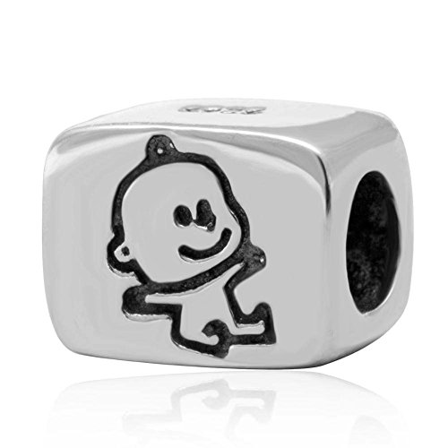 Baby Footprint Charm 925 Sterling Silver Family Love Bead Baby First Steps Charm for DIY Charms Charm Bracelet (D)
